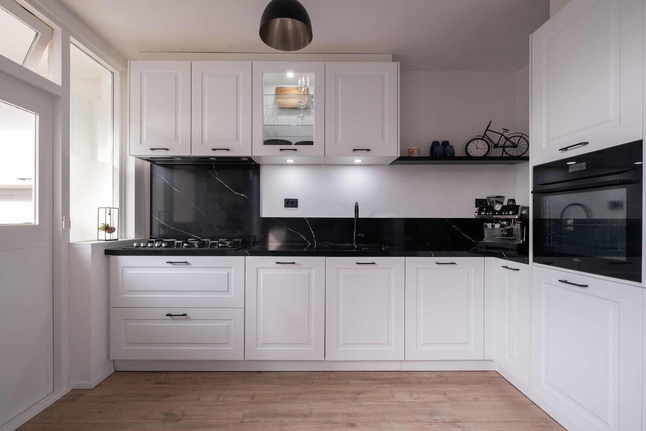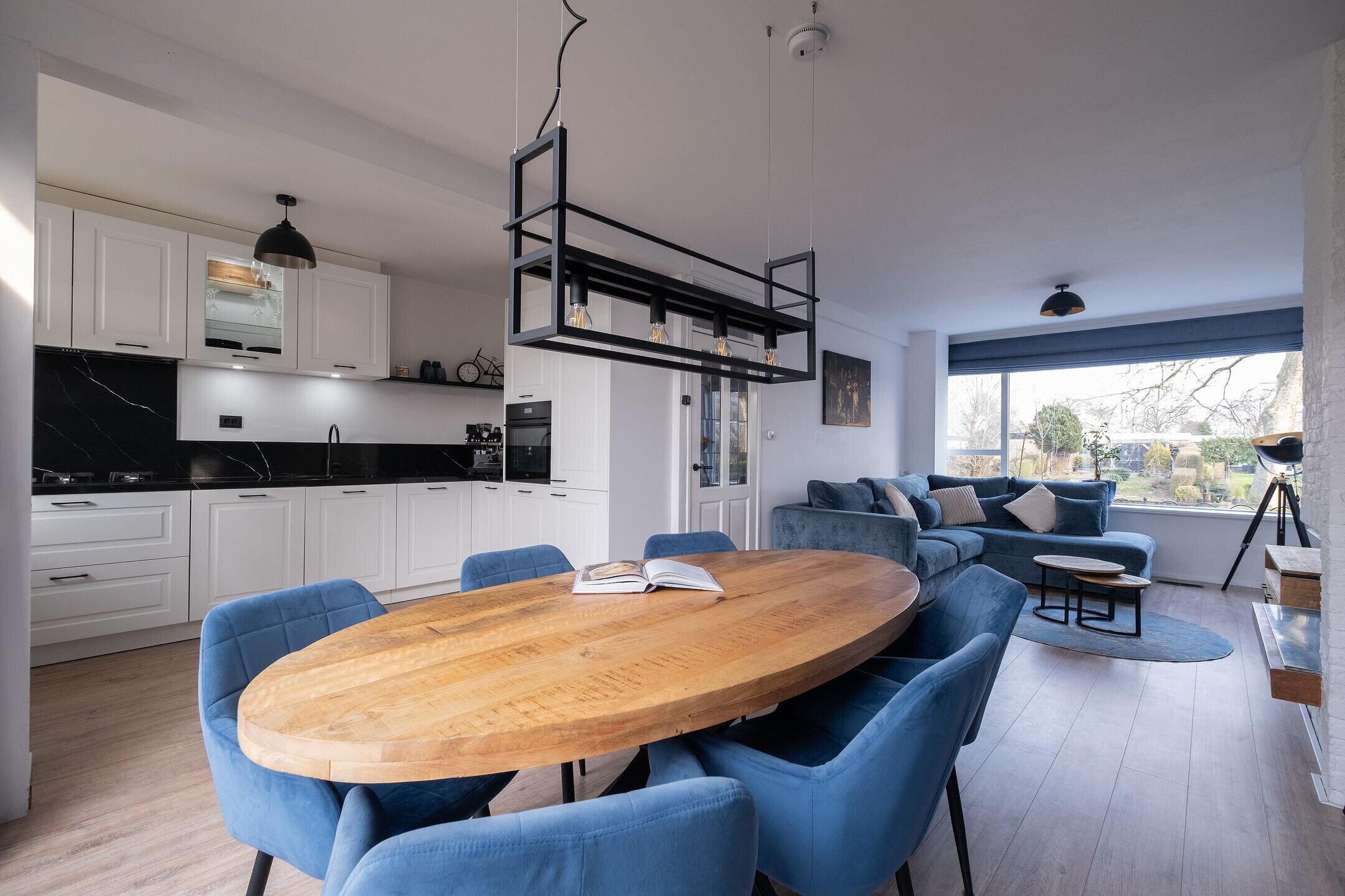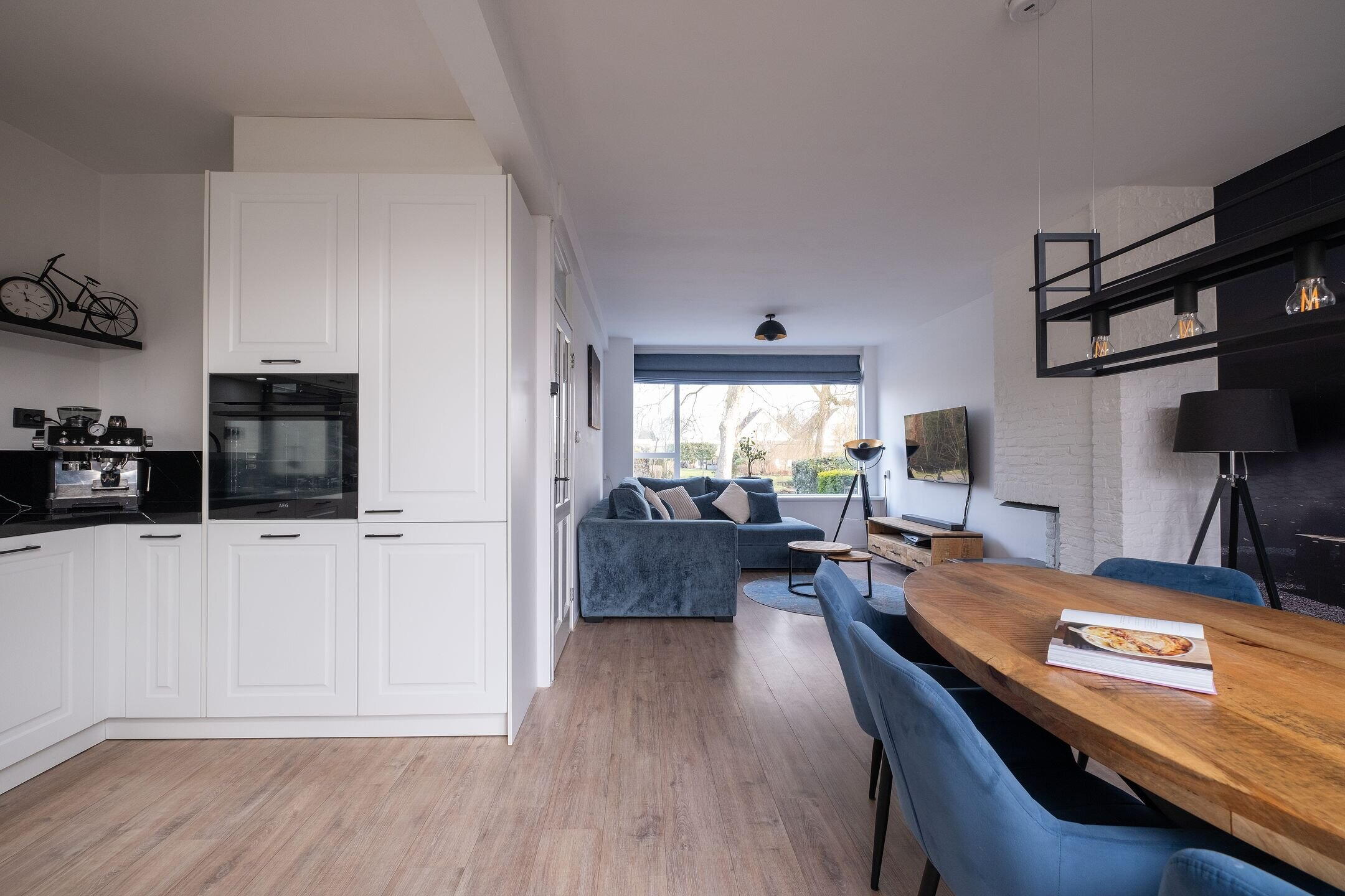 De open keuken is in 2021 vernieuwd en voorzien van AEG inbouwapparatuur: een 5-pits gaskookplaat, oven, grote koelkast, vaatwasser en afzuigkap. Een praktische en moderne plek om te koken.