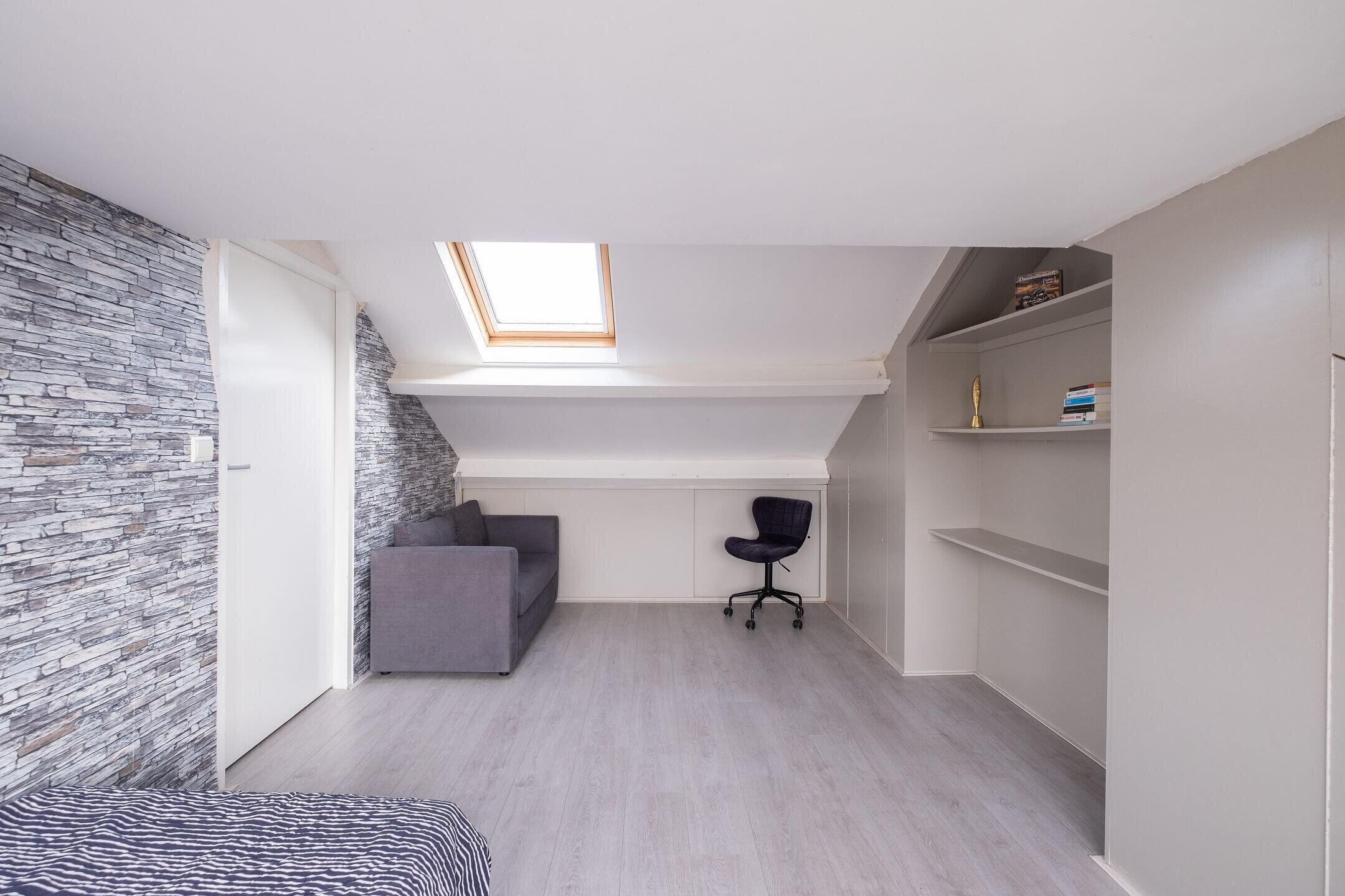 Op voorzolder tref je de unit voor de hete luchtverwarming en veel bergruimte. Aansluitend komen we bij de lichte 5e slaapkamer voorzien van een dakkapel.