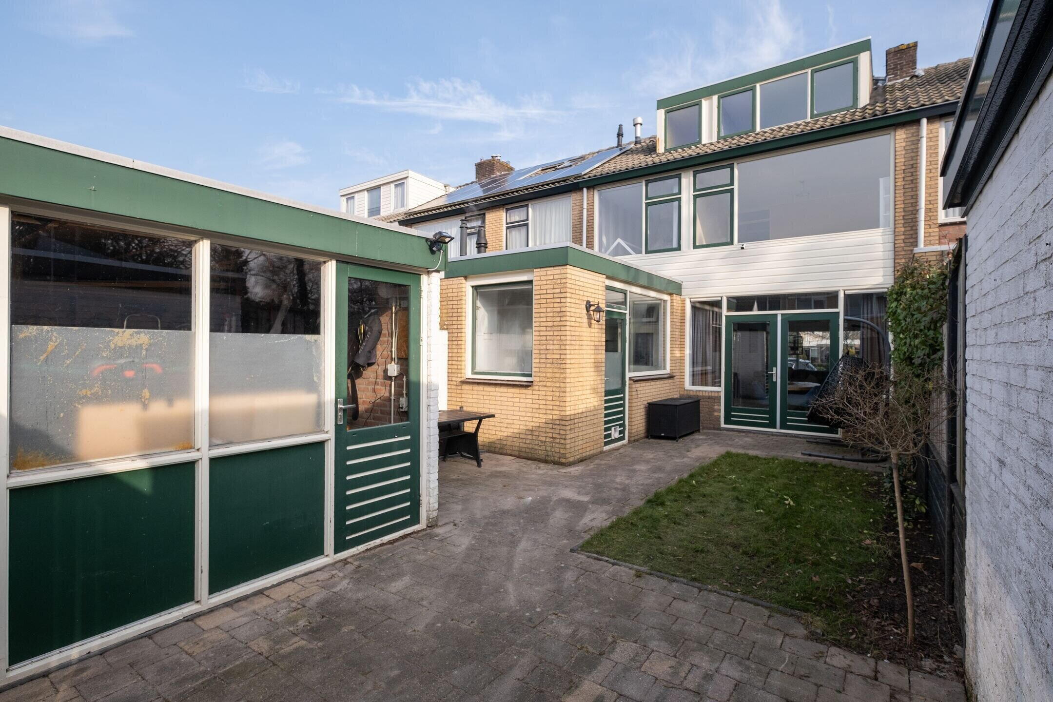 De woning beschikt over een voor- en achtertuin. De achtertuin van bijna 11 meter ligt op het zuidwesten. Hier geniet je volop van de middag- en avondzon. Daarnaast is er een vrijstaande stenen schuur met elektriciteit aanwezig, ideaal voor fietsen en extra opslag.