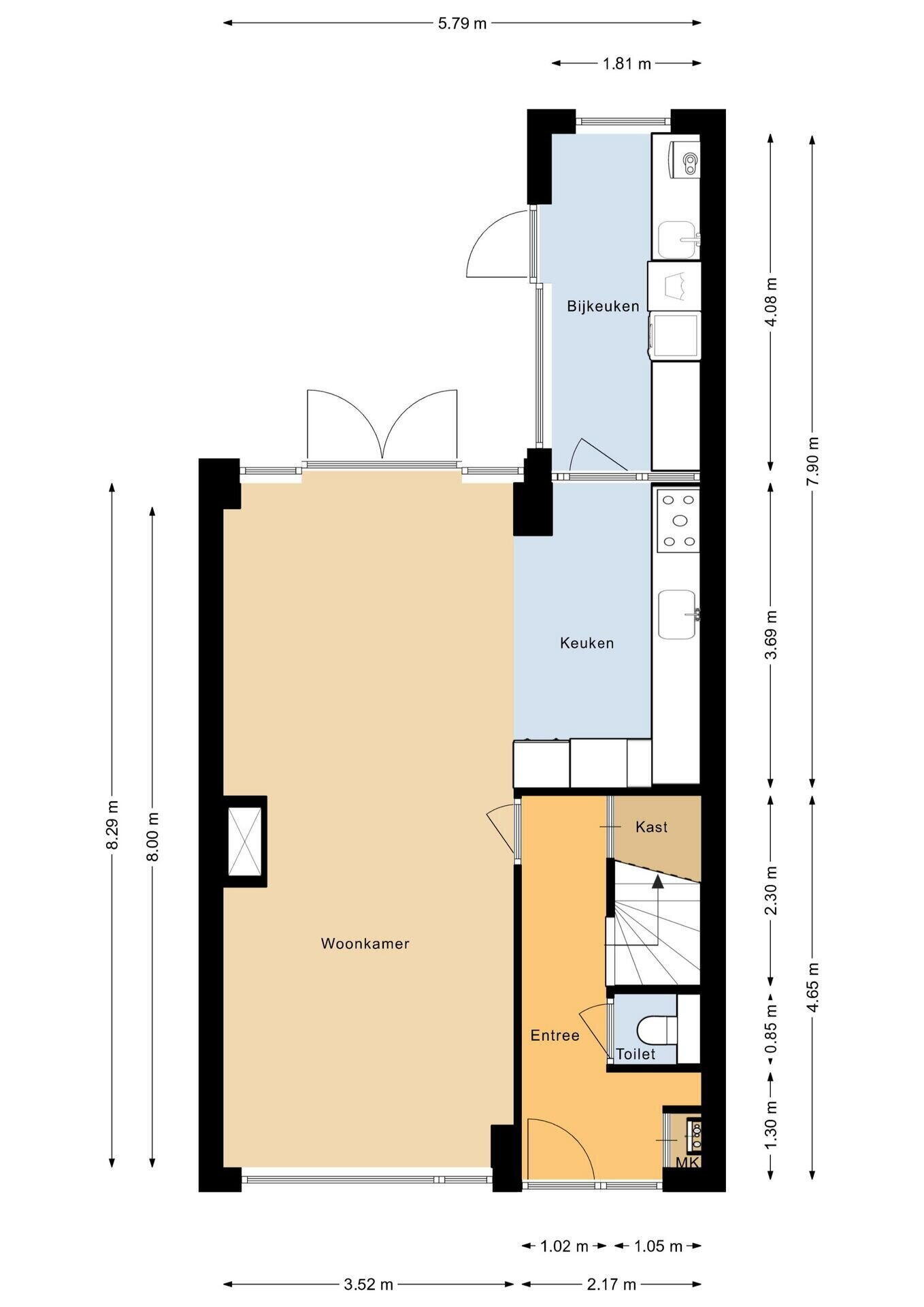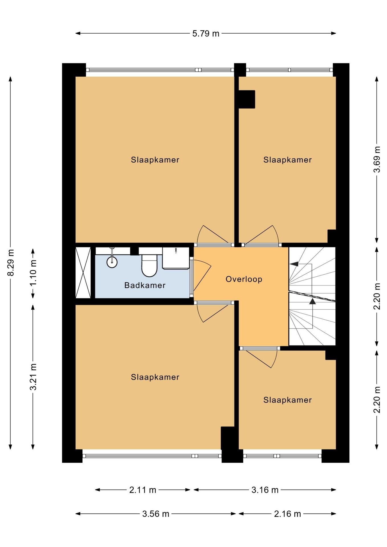 - 65 m² (10,80 meter diep en 6,00 meter breed)